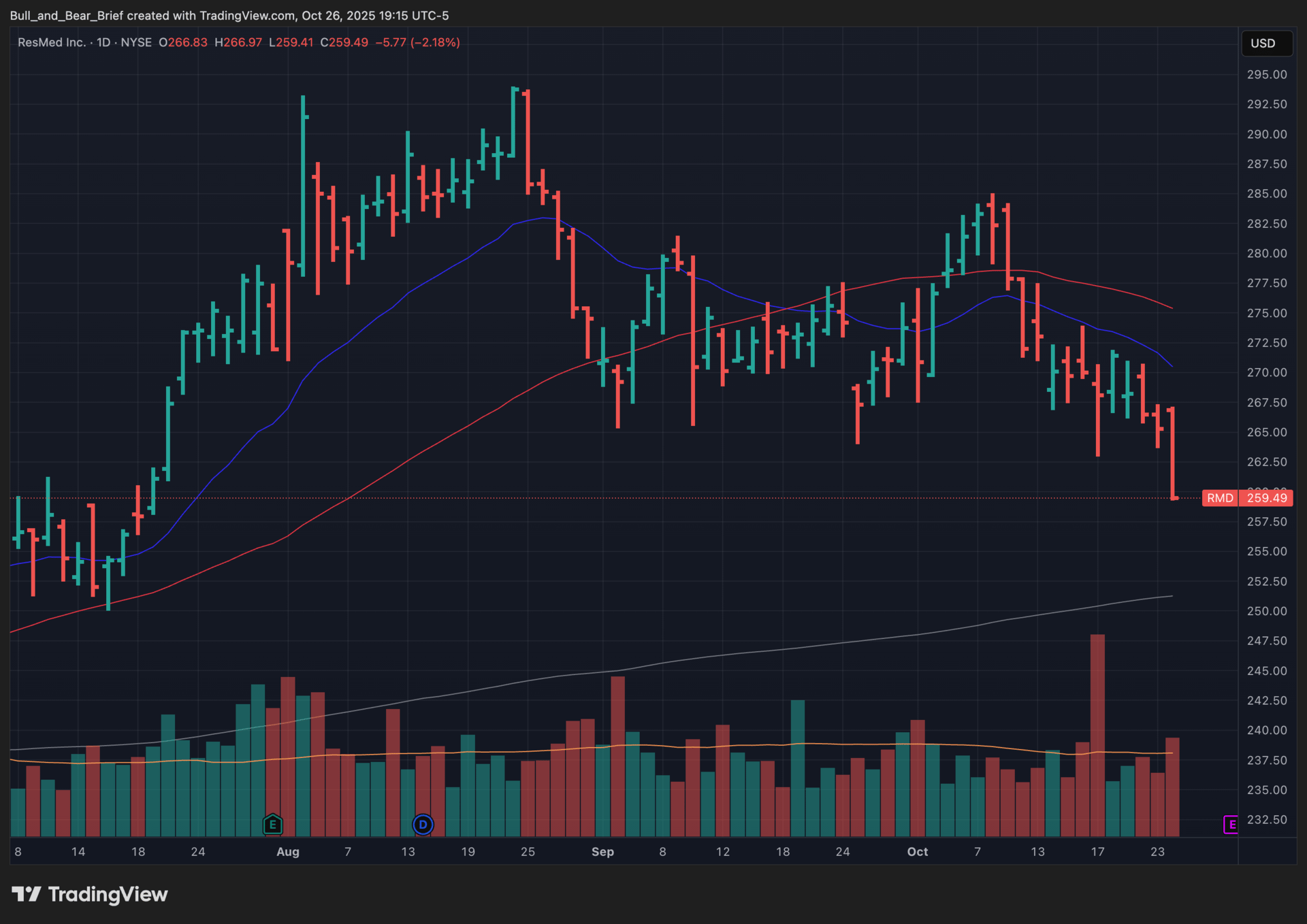 If medtech and managed care remain soft, price action likely leans toward chop or a fade from highs—sound fundamentals, temporarily capped by sector headwinds. But fundamentally, RMD’s expanding installed base, embedded data ecosystem, and exposure to rising diagnosis and treatment rates for sleep apnea and chronic respiratory disease support a long-term compounding case anchored by recurring cash generation and shareholder returns. Long-term investors can stay patient, waiting for either a cleaner technical setup or the next fundamental catalyst—clinical data, software adoption milestones, or reimbursement/budget tailwinds—to reassert leadership.